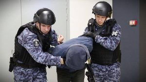 Фото: пресс-служба Росгвардии Сотрудники вневедомственной охраны Главного управления Росгвардии по г. Москве отработали алгоритм действий при поступлении сигнала «тревога», поступившего из продуктового сетевого супермаркета в торговом центре. По учебному сценарию группа задержания получила сигнал о краже. Росгвардейцы прибыли...